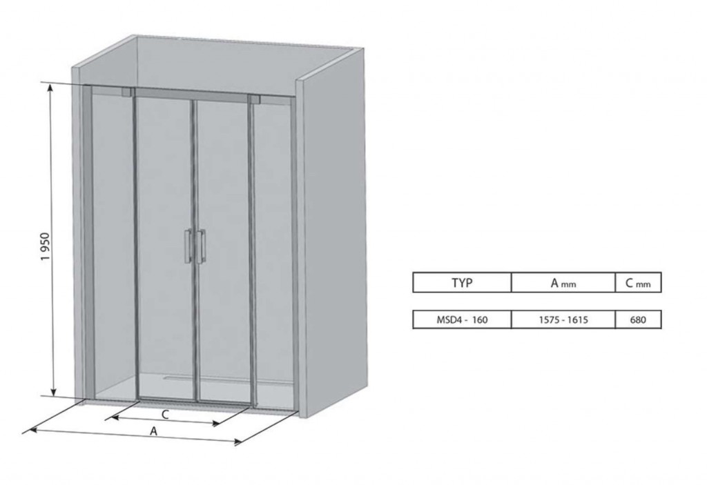 Čtyřdílné sprchové posuvné dveře