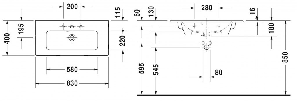 - bez otvoru pro umyvadlovou baterii