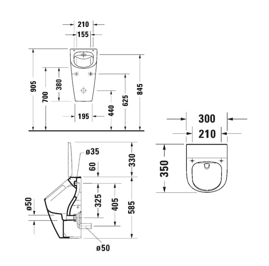 Víko pro urinál, přítoková armatura a sifon nejsou součástí dodávky.