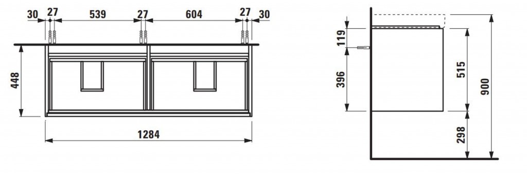 Závěsná skříňka pro dvojumyvadlo