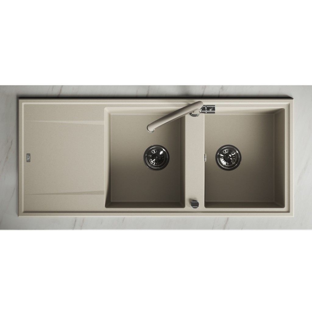 Dřez Megalo od Laveo je řešením pro ty, kteří hledají jednodřezový žulový dřez se standardním odkapávačem. Obrovskou výhodou je prostorná mísa o rozměrech 40x42x17 cm, která snadno pojme hrnce a pánve. Odkapávač umožňuje posouvat nestandardní příslušenství kolem dřezu, což zjednodušuje přípravu a úklid jídel, aniž by to ohrozilo prostor na pracovní desce, zatímco okraj kolem dřezu chrání pracovní desku před politím. K dispozici je také dvoudřezový dřez s odkapávačem. Tento velkorysý model o rozměrech 116x50x185 cm se vejde do skříňky o šířce 90 cm. Je nepochybně skvělou volbou do velkých kuchyní, kde rádi vaříte a pohoštěte. Dobrým doplňkem je například baterie s flexibilním nebo výsuvným výtokem, která usnadňuje čištění dřezu. Oboustrannost obou modelů umožňuje přizpůsobení – odkapávač lze umístit na levou nebo pravou stranu. Tento vysoce kvalitní žulový dřez se dodává s 10letou zárukou a je vyroben v polské továrně. Výrobek je odolný vůči skvrnám, promáčklinám a všem každodenním kuchyňským pracím. Sada navíc obsahuje prostorově úsporný sifon, který uvolní více místa ve skříňce pod dřezem.