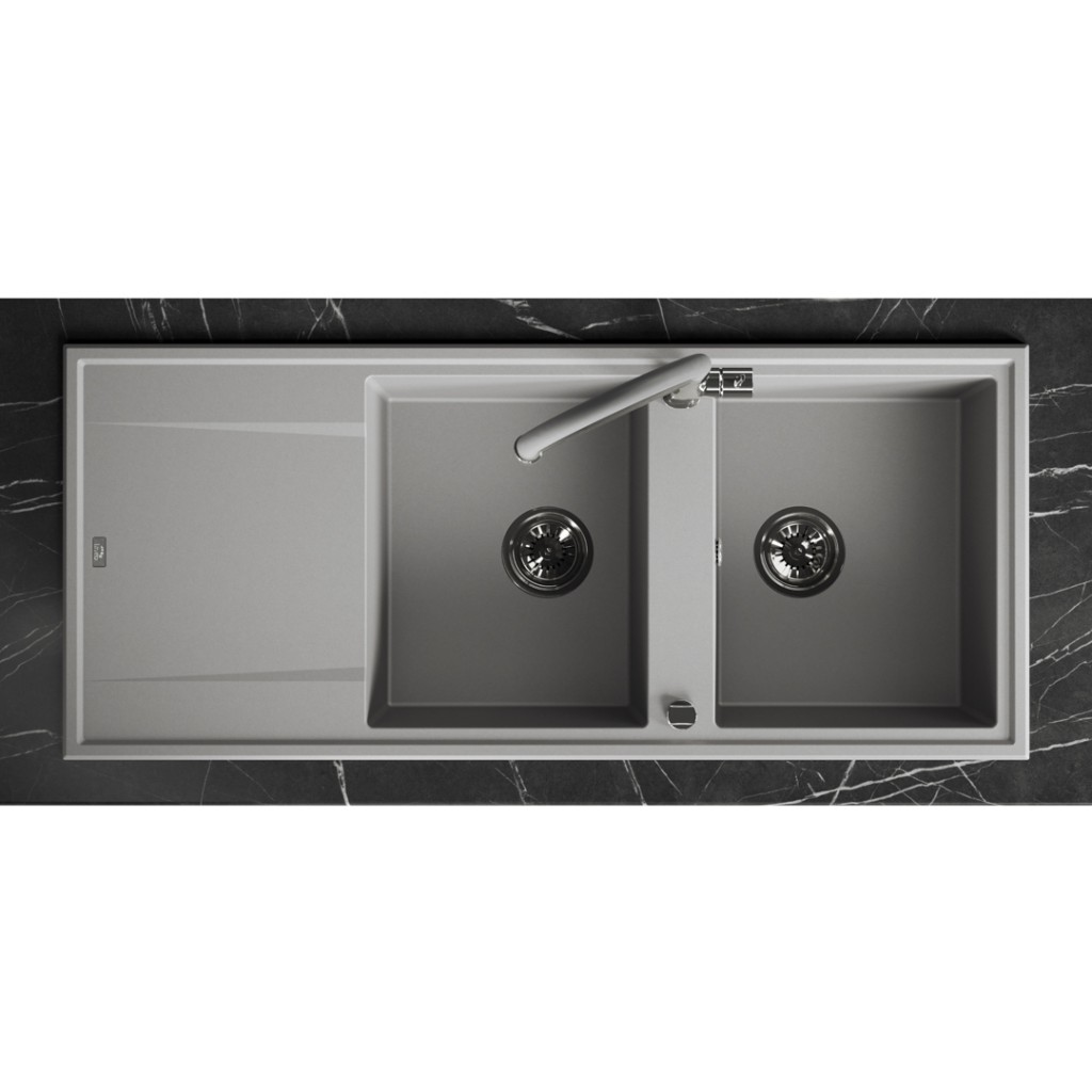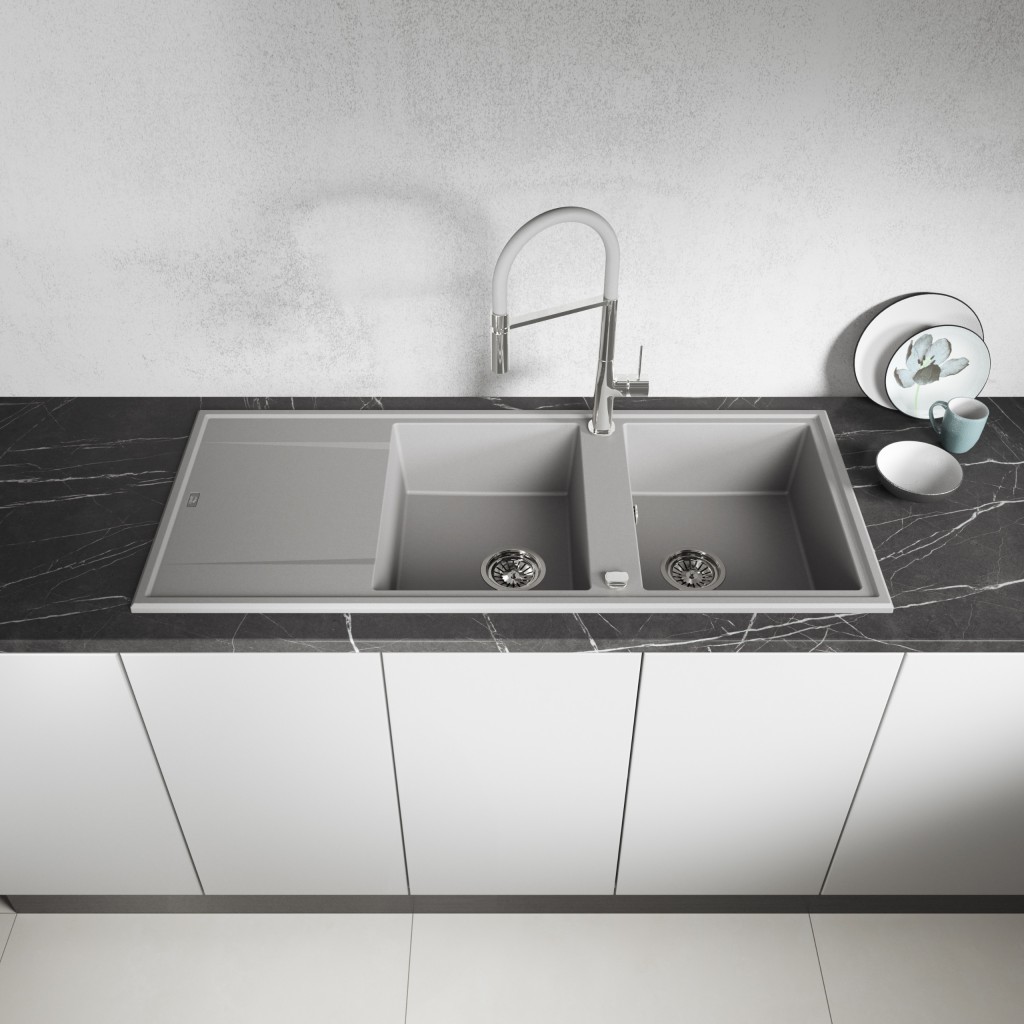 Dřez Megalo od Laveo je řešením pro ty, kteří hledají jednodřezový žulový dřez se standardním odkapávačem. Obrovskou výhodou je prostorná mísa o rozměrech 40x42x17 cm, která snadno pojme hrnce a pánve. Odkapávač umožňuje posouvat nestandardní příslušenství kolem dřezu, což zjednodušuje přípravu a úklid jídel, aniž by to ohrozilo prostor na pracovní desce, zatímco okraj kolem dřezu chrání pracovní desku před politím. K dispozici je také dvoudřezový dřez s odkapávačem. Tento velkorysý model o rozměrech 116x50x185 cm se vejde do skříňky o šířce 90 cm. Je nepochybně skvělou volbou do velkých kuchyní, kde rádi vaříte a pohoštěte. Dobrým doplňkem je například baterie s flexibilním nebo výsuvným výtokem, která usnadňuje čištění dřezu. Oboustrannost obou modelů umožňuje přizpůsobení – odkapávač lze umístit na levou nebo pravou stranu. Tento vysoce kvalitní žulový dřez se dodává s 10letou zárukou a je vyroben v polské továrně. Výrobek je odolný vůči skvrnám, promáčklinám a všem každodenním kuchyňským pracím. Sada navíc obsahuje prostorově úsporný sifon, který uvolní více místa ve skříňce pod dřezem.