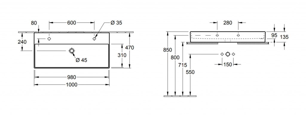 - spodní strana umyvadla je broušená
