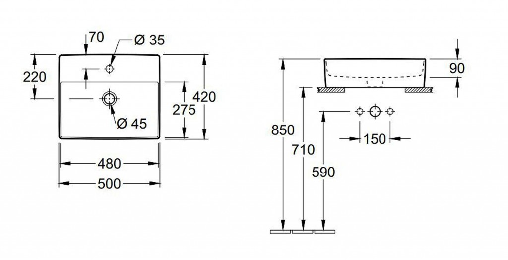 - doporučeno pro montáž s minimální vzdáleností mezi zadní stěnou umyvadla a stěnou