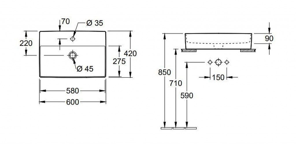 - doporučeno pro montáž s minimální vzdáleností mezi zadní stěnou umyvadla a stěnou