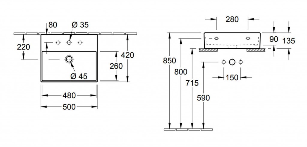 - spodní strana umyvadla je broušená