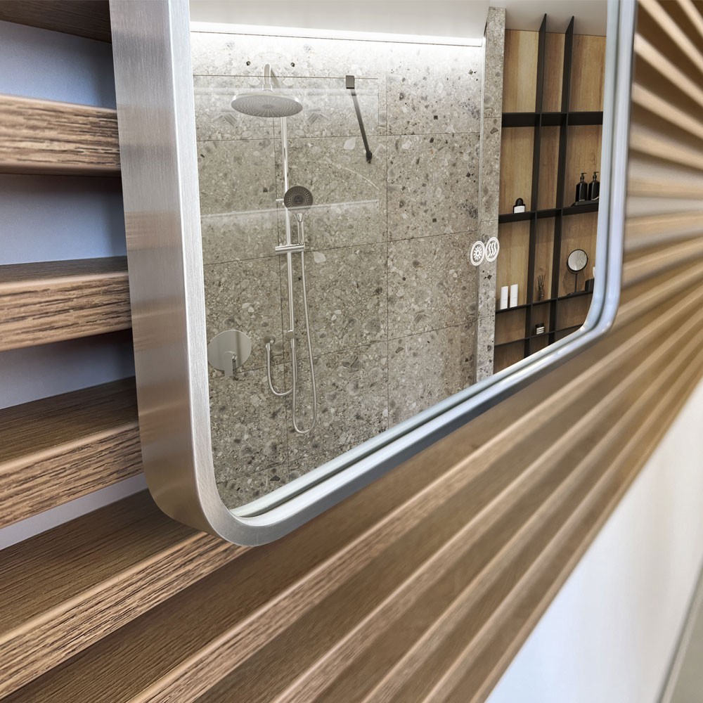 Zrcadla s LED osvětlením a funkcí odmlžování se automaticky vypnou po hodině provozu, čímž zajišťují úsporu energie a přispívají k bezpečnosti.