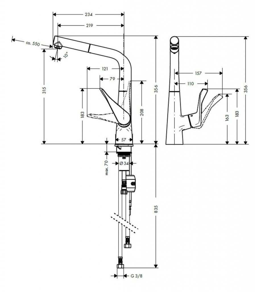 - zpúsob montáže: přívodní hadice G ⅜