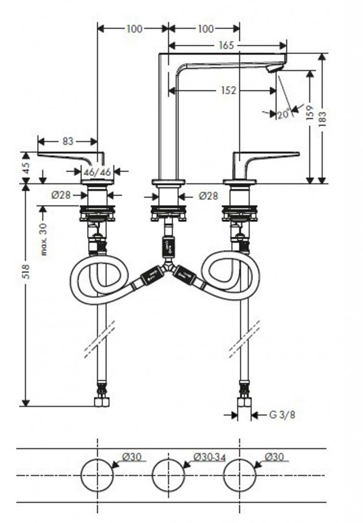 Tříotvorová umyvadlová baterie 160 s třmenovými rukojeťmi