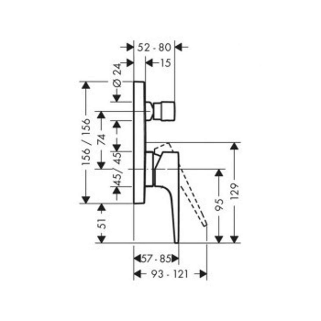 Páková vanová baterie s třmenovou rukojetí pod omítku s bezpečnostní kombinací.