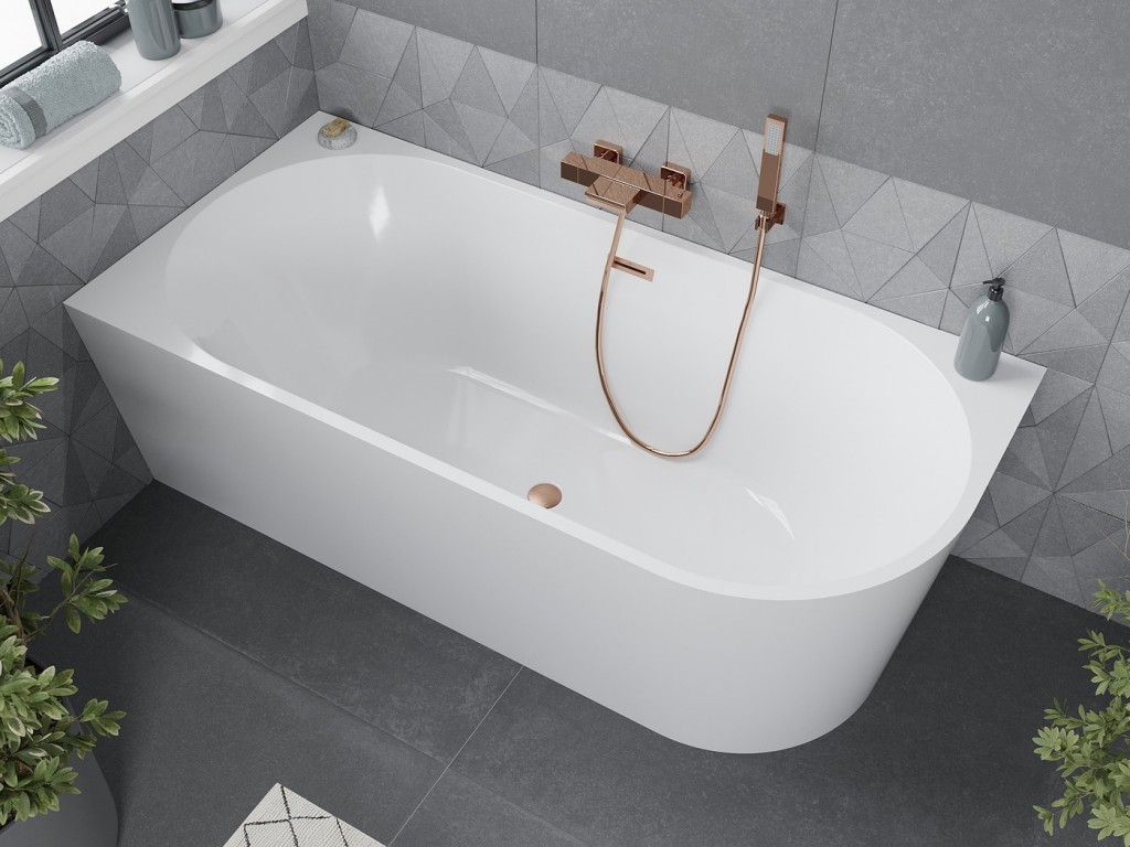 Volně stojící rohová vana MIA je určena k umístění do rohu ke stěně. Je to často luxusní a design prvek, který přináší do koupelny elegantní a moderní vzhled. Volně stojící vany jsou často spojovány s luxusními koupelnami a nabízejí jedinečný zážitek z koupání.