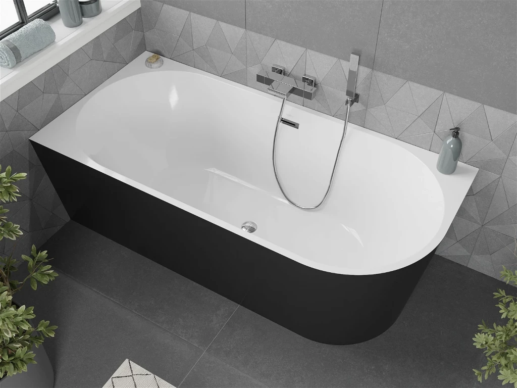 Volně stojící rohová vana MIA je určena k umístění ke stěně. Je to často luxusní a designový prvek, který přináší do koupelny elegantní a moderní vzhled. Volně stojící vany jsou často spojovány s luxusními koupelnami a nabízejí jedinečný zážitek z koupání.