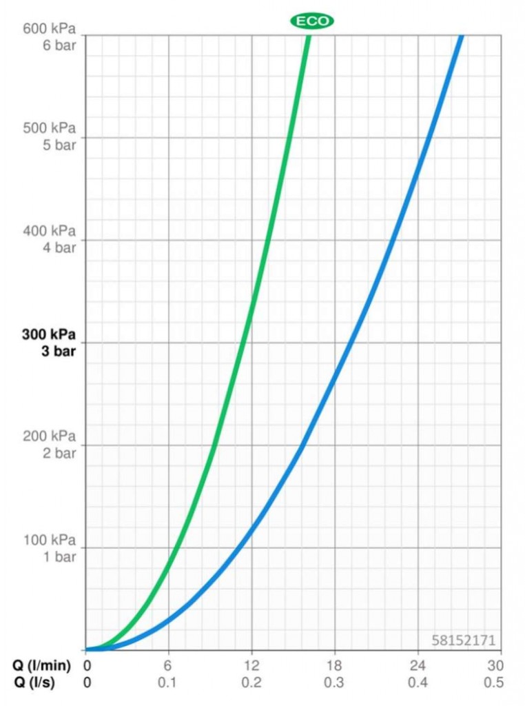 - úsporný průtok 11.4 l/min (při tlaku 3 bar)