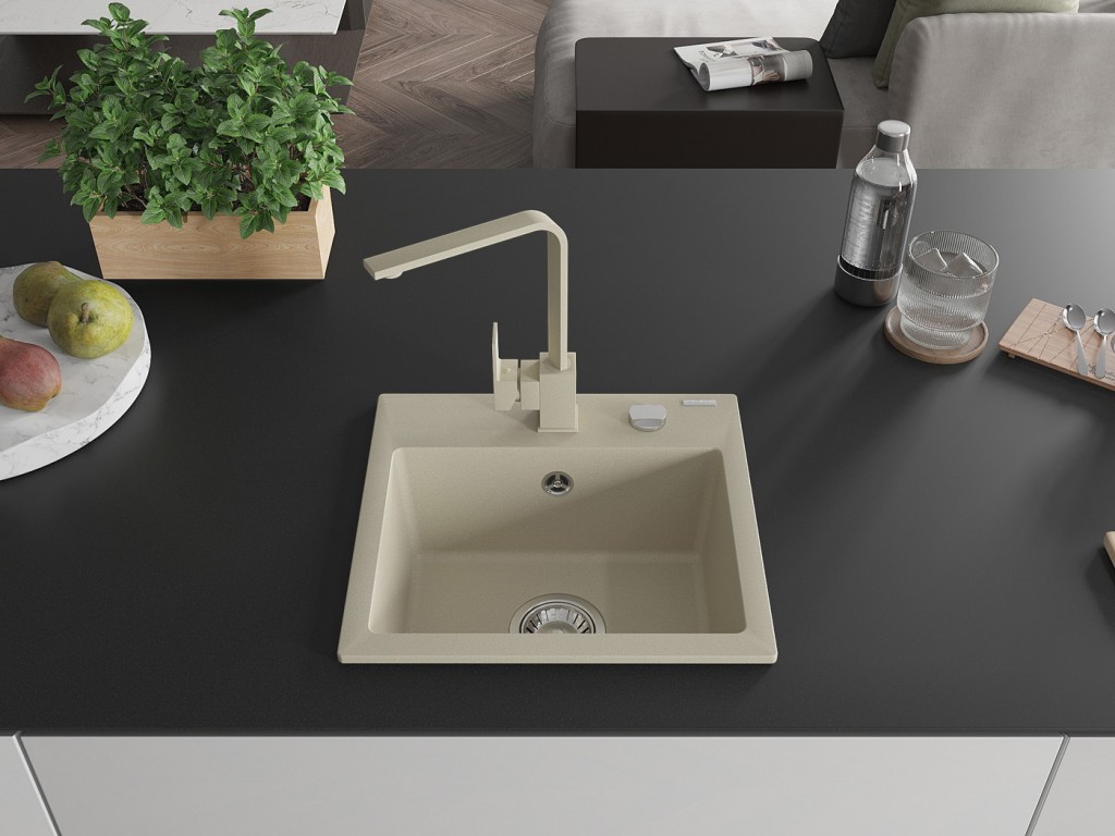 Speciální složení materiálu použitého pro výrobu je žula (80% žula – kámen, 20% pryskyřice) a jeho vysoká hustota garantuje bezpečné používání výrobku, a proto jsou granitové dřezy tak oblíbené. Díky povrchové úpravě nejsou na granitovém dřezu vidět zaschlé kapky, je odolný vůči skvrnám a neztrácí barvu. Povrch je odolný vůči nárazu, poškrábání, změně barvy, vysoké teplotě a teplotním šokům. Při jejich údržbě se používají obvyklé čistící prostředky nebo prostředky na nádobí s jemným abrasivem. Výhodou je rozmanitá barevná nabídka.