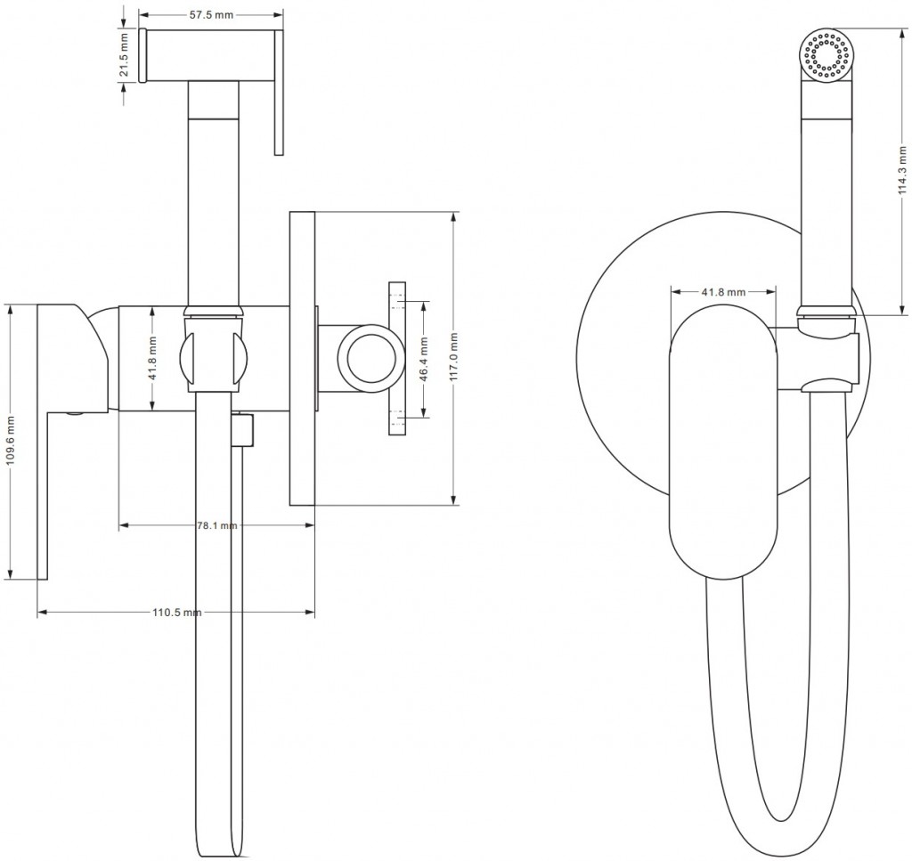 Nástěnná, mosazná podomítková bidetová baterie s keramickou kartuší o průměru 25 mm z originální kolekce MILO výrobce MEXEN bude dokonalým doplňkem koupelny zdobené dalšími prvky ze stejné kolekce. Tato jednopáková baterie je vybavena funkční bidetovou ruční sprchou /jedna funkce/ s ovládáním a hadicí dlouhou 1,25 m. Bidetová sprška zaručuje větší funkčnost baterie, pomáhají udržovat osobní hygienu, stejně jako udržovat čistotu v koupelně.