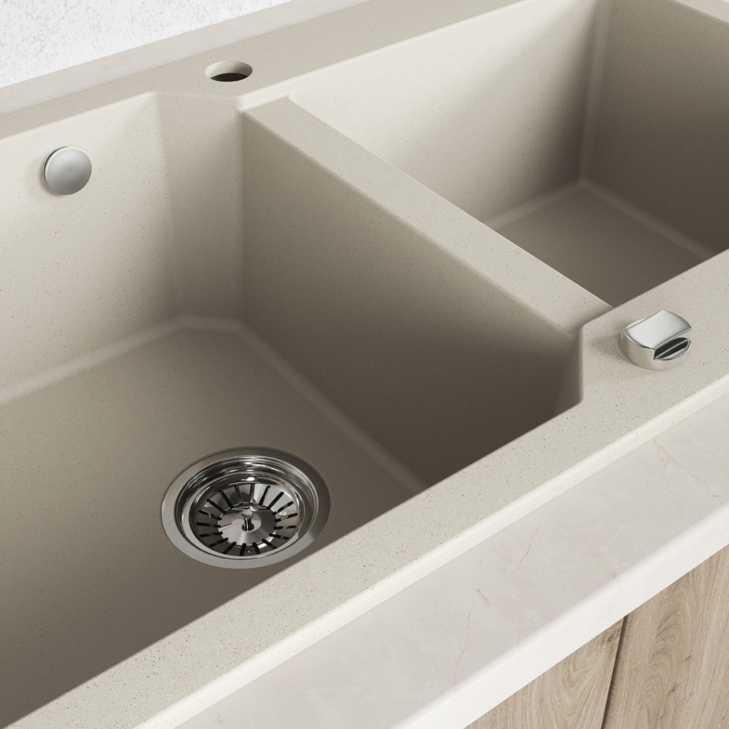 Řada granitových dřezů Milos je perfektním řešením pro moderní kuchyň, které kombinuje eleganci s výjimečnou funkčností. Tyto modely nabízejí dvě hluboké dřezy – větší je ideální pro mytí velkých hrnců a plechů na pečení, zatímco menší je ideální pro oplachování zeleniny a ovoce. Dřezy Milos poskytují pohodlí a efektivitu při každodenních kuchyňských úkonech. Prostorově úsporný sifon umožňuje lepší využití prostoru pod dřezem, což je pro organizaci kuchyně klíčové. Dřezy jsou oboustranné, což umožňuje flexibilní instalaci tak, aby se přizpůsobily uspořádání vaší kuchyně. Jsou vyrobeny z granity, jsou vysoce odolné vůči poškrábání, skvrnám a vysokým teplotám, což zaručuje dlouhodobý a esteticky příjemný vzhled i při intenzivním používání. Elegantní granitový design a široká škála barev dělají z dřezů Milos perfektní volbu pro každou moderní kuchyň a dodávají jí styl a funkčnost. Výběrem řady Milos investujete do odolného a praktického kusu vybavení, který splní všechny kuchyňské výzvy.