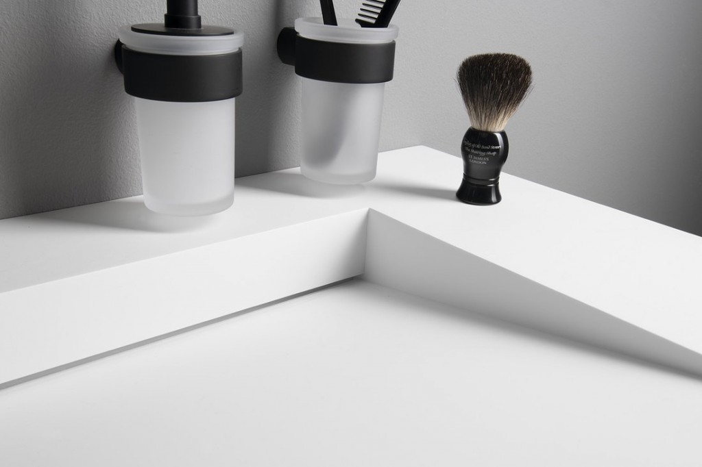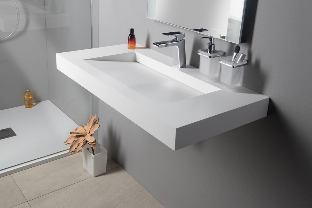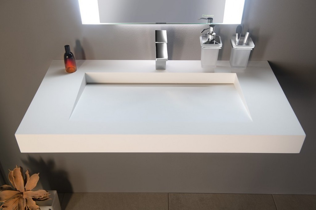 Umyvadlo MINERVA je vyrobeno z materiálu Solid Surface a zaujme především hranatým tvarem a štíhlou linií. Díky elegantnímu provedení odpadu mizí odtékající voda úzkou štěrbinou. Celkový dojem je možno doplnit o sifon v chromovém nebo černém provedení.