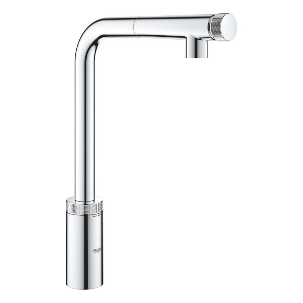 Baterie Minta SmartControl umožňuje regulaci proudu vody a její teploty jednou rukou. Vysoká výpusť usnadní plnění velkých hrnců a vytahovací sprška zvyšuje dosah použití baterie. Díky výkonným magnetům se také sprchová hlavice po použití automaticky a plynule zasune zpět do své původní polohy. Tato dřezová baterie také disponuje otočným ventilem pro regulaci objemu vody.