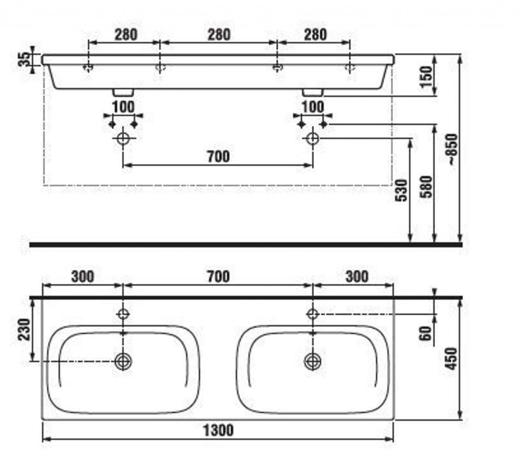 Sifon a vodovodní baterie nejsou součástí dodávky.