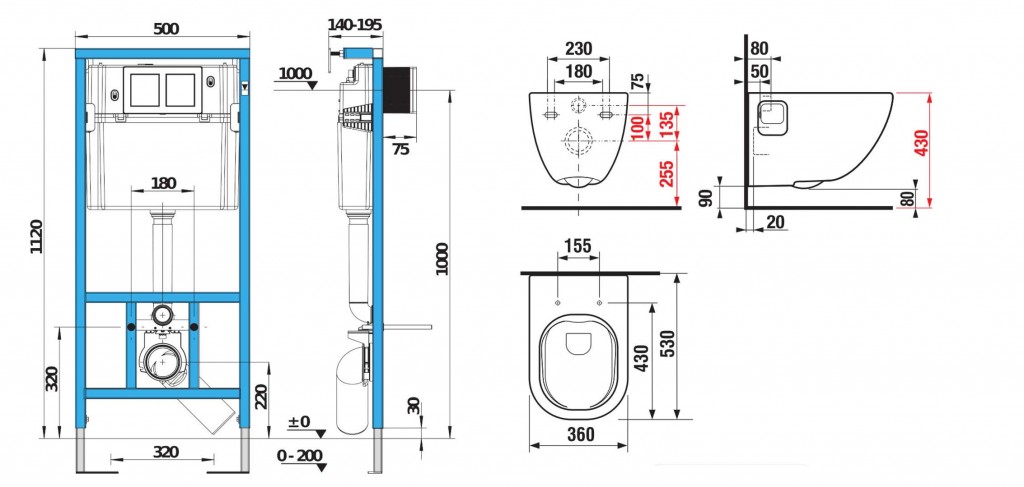 WC sedátko a splachovací tlačítko nejsou součástí WC setu - nutno zakoupit zvlášť.