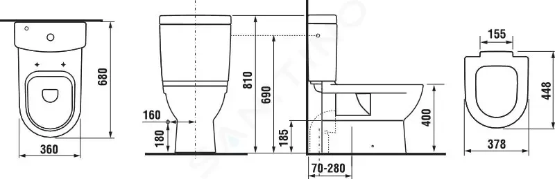 Splachovací nádržka a WC sedátko není součástí dodávky, je třeba objednat samostatně.