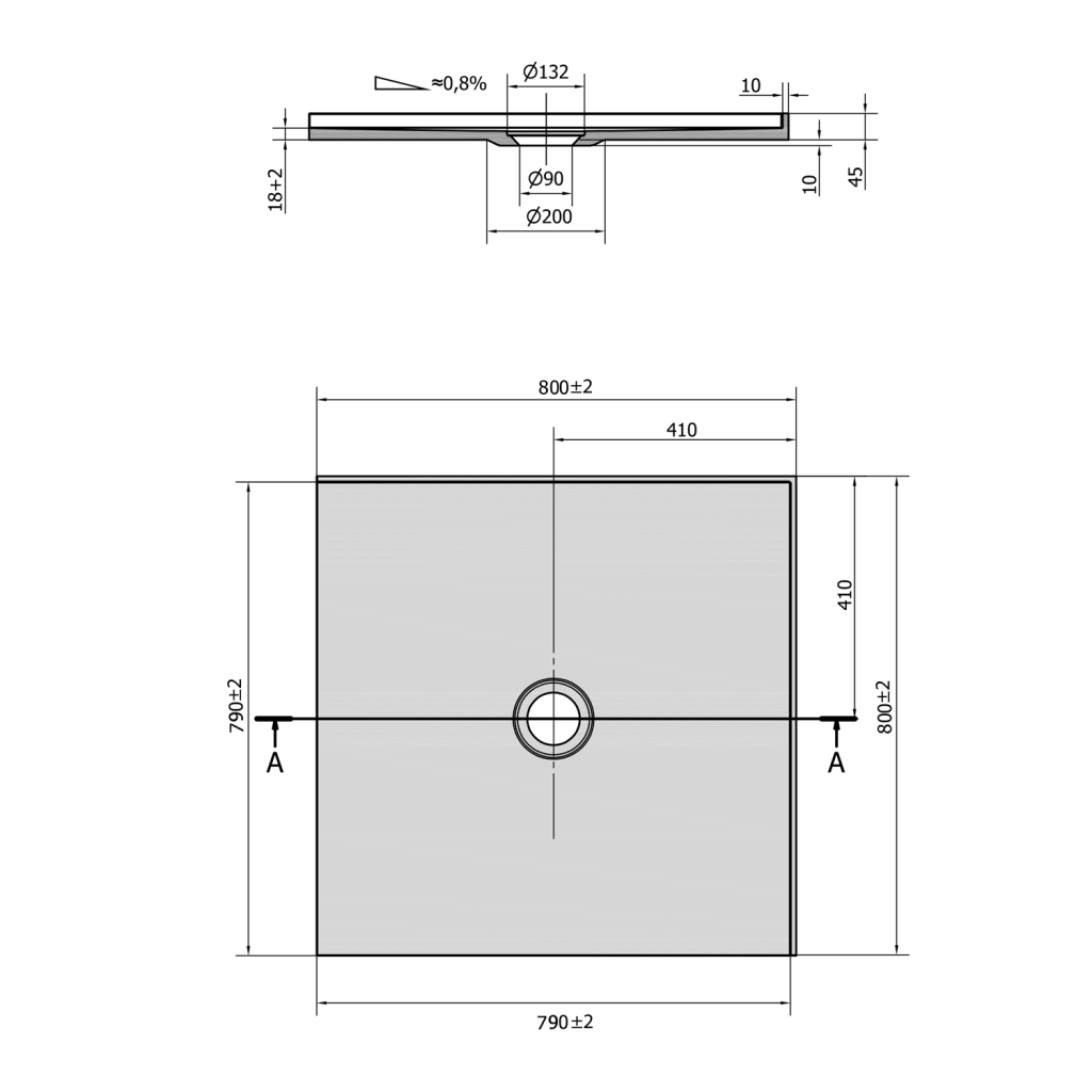 - Drážky na spodní straně umožňují vaničku nalepit přímo na podlahu. Díky nízké výšce 18 mm lze dlažbu nalepit do stejné roviny s vaničkou.