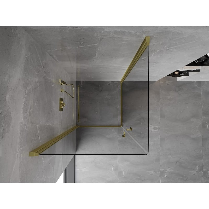 Specifikace produktu: Rozměr: 80x80 cm Výška: 200 cm Strana montáže: Univerzální Vchod: Dveře s výklopnými křídly Barva skla: Průhledná Povrchová úprava: Kartáčované zlato Profil: Hliník Typ skla: Tvrzené Tloušťka skla: 6 mm Povrchová úprava pro snadné čištění Nastavitelná šířka Možnost montáže na sprchovou vaničku nebo dlaždice Mechanismus zvedání a spouštění dveří Magnetický proužek a elastomerové těsnění pro odtok vody Hliníkový práh těsnění dveří