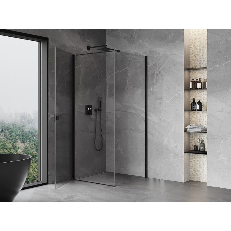 Specifikace produktu: Rozměr: 100x100 cm (dveře 100 cm, stěna 100 cm) Výška: 200 cm Strana montáže: Univerzální Vchod: Dveře s výklopnými křídly Barva skla: Průhledná Povrchová úprava: Černá Profil: Hliník Konzola: Nerezová ocel Max. délka konzoly: 150 cm Konzolu lze řezat Typ skla: Tvrzené Tloušťka skla: 6 mm Povrchová úprava pro snadné čištění Nastavitelná šířka Možnost montáže na sprchovou vaničku nebo dlaždice Mechanismus zvedání a spouštění dveří Magnetický proužek a elastomerové těsnění pro odtok vody Hliníkový práh těsnění dveří