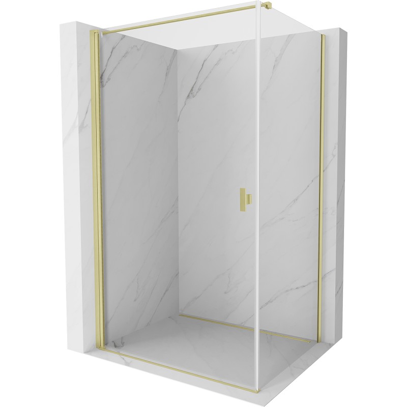 Specifikace produktu: Rozměr: 70x80 cm (dveře 70 cm, stěna 80 cm) Výška: 200 cm Strana montáže: Univerzální Vchod: Dveře s otočnými panty Barva skla: Průhledná Povrchová úprava: Kartáčované zlato Profil: Hliník Konzola: Nerezová ocel Max. délka konzoly: 150 cm Konzolu lze řezat Typ skla: Tvrzené Tloušťka skla: 6 mm Povrchová úprava pro snadné čištění Nastavitelná šířka Možnost montáže na sprchovou vaničku nebo dlaždice Mechanismus zvedání a spouštění dveří Magnetický proužek a elastomerové těsnění pro odtok vody Hliníkový práh těsnění dveří
