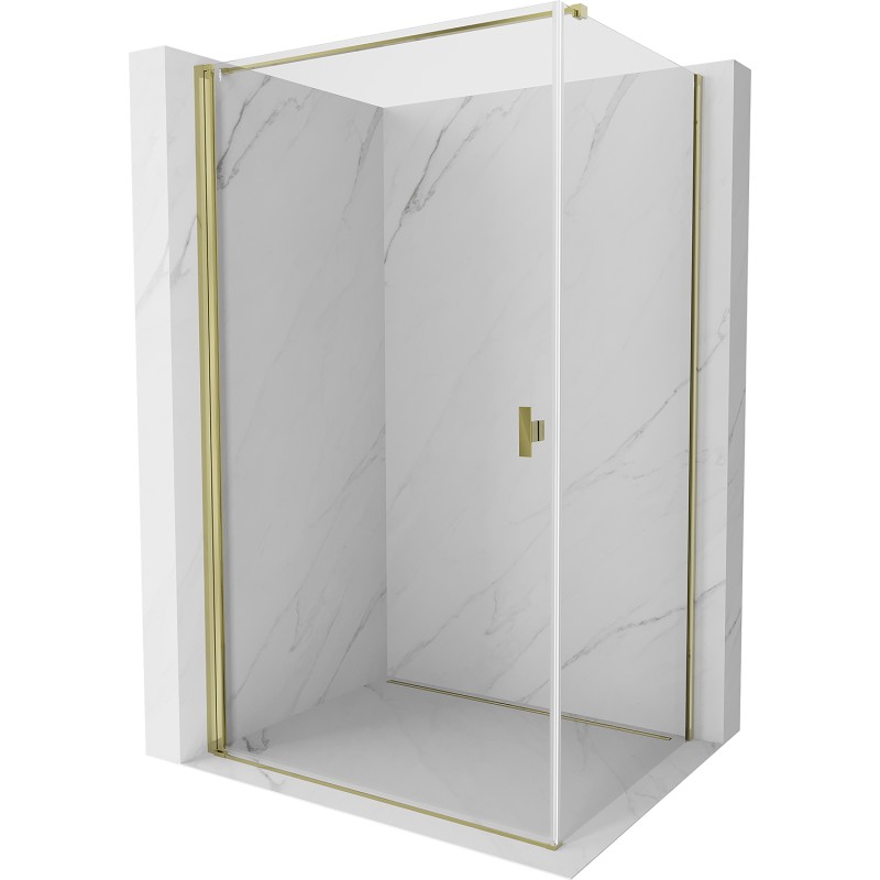 Specifikace produktu: Rozměr: 75x80 cm (dveře 75 cm, stěna 80 cm) Výška: 200 cm Strana montáže: Univerzální Vchod: Dveře s otočnými křídly Barva skla: Průhledná Povrchová úprava: Zlatá Profil: Hliník Konzola: Nerezová ocel Max. délka konzoly: 150 cm Konzolu lze řezat Typ skla: Tvrzené Tloušťka skla: 6 mm Povrchová úprava pro snadné čištění Nastavitelná šířka Možnost montáže na sprchovou vaničku nebo dlaždice Mechanismus zvedání a spouštění dveří Magnetický proužek a elastomerové těsnění pro odtok vody Hliníkový práh těsnění dveří