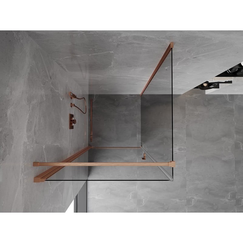 Specifikace produktu: Rozměr: 90x90 cm (dveře 90 cm, stěna 90 cm) Výška: 200 cm Strana montáže: Univerzální Vchod: Dveře s otočnými panty Barva skla: Průhledná Povrchová úprava: Kartáčovaná měď Profil: Hliník Konzola: Nerezová ocel Max. délka konzoly: 150 cm Konzolu lze řezat Typ skla: Tvrzené Tloušťka skla: 6 mm Povrchová úprava pro snadné čištění Nastavitelná šířka Možnost montáže na sprchovou vaničku nebo dlaždice Mechanismus zvedání a spouštění dveří Magnetický proužek a elastomerové těsnění pro odtok vody Hliníkový práh těsnění dveří