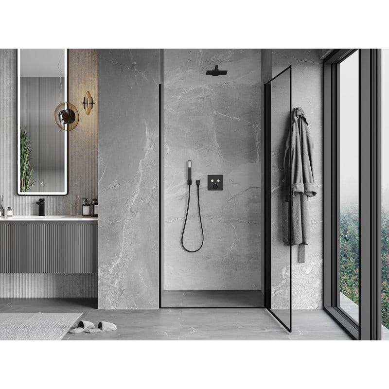 Specifikace produktu: Rozměr: 100x200 cm Strana montáže: Pravá Vchod: Výklopný Barva skla: Černý rám Povrchová úprava: Černá Profil: Hliník Typ skla: Tvrzené Tloušťka skla: 6 mm Povrchová úprava pro snadné čištění Nastavitelná šířka Možnost montáže na sprchovou vaničku nebo dlaždice Mechanismus zvedání a spouštění dveří Magnetický proužek a elastomerové těsnění pro odtok vody Hliníkový práh těsnění dveří