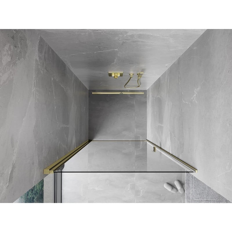 Specifikace produktu: Rozměr: 90x200 cm Strana montáže: Univerzální Vchod: Výklopný Barva skla: Průhledná Povrchová úprava: Zlatá Profil: Hliník Typ skla: Tvrzené Tloušťka skla: 6 mm Povrchová úprava pro snadné čištění Nastavitelná šířka Možnost montáže na sprchovou vaničku nebo dlaždice Mechanismus zvedání a spouštění dveří Magnetický proužek a elastomerové těsnění pro odtok vody Hliníkový práh těsnění dveří