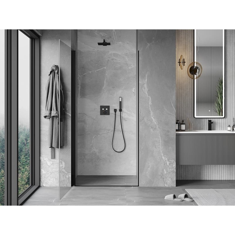 Specifikace produktu: Rozměr: 95x200 cm Strana montáže: Univerzální Vchod: Výklopný Barva skla: Průhledná Povrchová úprava: Černá Profil: Hliník Typ skla: Tvrzené Tloušťka skla: 6 mm Povrchová úprava pro snadné čištění Nastavitelná šířka Možnost montáže na sprchovou vaničku nebo dlaždice Mechanismus zvedání a spouštění dveří Magnetický proužek a elastomerové těsnění pro odtok vody Hliníkový práh těsnění dveří