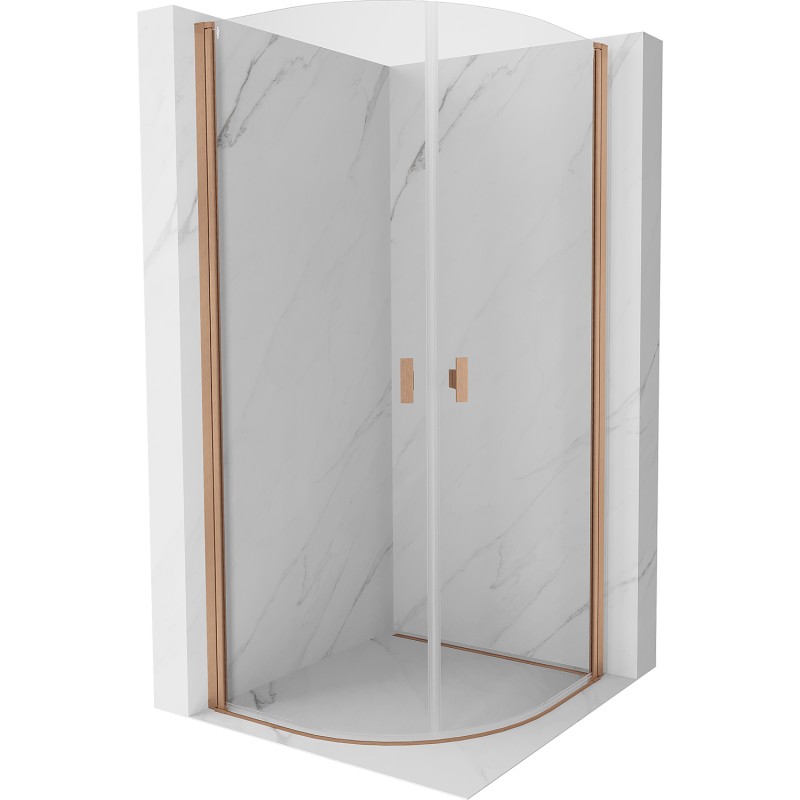 Specifikace produktu: Rozměr: 80x80 cm Výška: 200 cm Poloměr zakřivení R55 Strana montáže: Univerzální Vchod: Dveře s výklopnými dveřmi Barva skla: Průhledná Povrchová úprava: Kartáčovaná měď Profil: Hliník Typ skla: Tvrzené Tloušťka skla: 6 mm Povrchová úprava pro snadné čištění Nastavitelná šířka Možnost instalace na sprchovou vaničku nebo dlaždice Mechanismus zvedání a spouštění dveří Magnetický proužek a elastomerové těsnění pro odtok vody Hliníkový práh těsnění dveří