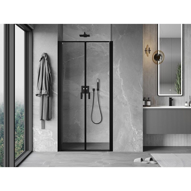 Specifikace produktu: Rozměr: 100x200 cm Strana montáže: Univerzální Vchod: Výklopný Barva skla: Černý rám Povrchová úprava: Černá Profil: Hliník Typ skla: Tvrzené Tloušťka skla: 6 mm Povrchová úprava pro snadné čištění Nastavitelná šířka Možnost montáže na sprchovou vaničku nebo dlaždice Mechanismus zvedání a spouštění dveří Magnetický proužek a elastomerové těsnění pro odtok vody Hliníkový práh těsnění dveří