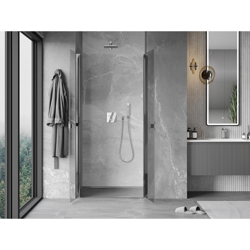 Specifikace produktu: Rozměr: 100x200 cm Strana montáže: Univerzální Vchod: Výklopný Barva skla: Průhledná Povrchová úprava: Chrom Profil: Hliník Typ skla: Tvrzené Tloušťka skla: 6 mm Povrchová úprava pro snadné čištění Nastavitelná šířka Možnost instalace na sprchovou vaničku nebo dlaždice Mechanismus zvedání a spouštění dveří Magnetický proužek a elastomerové těsnění pro odtok vody Hliníkový práh těsnění dveří