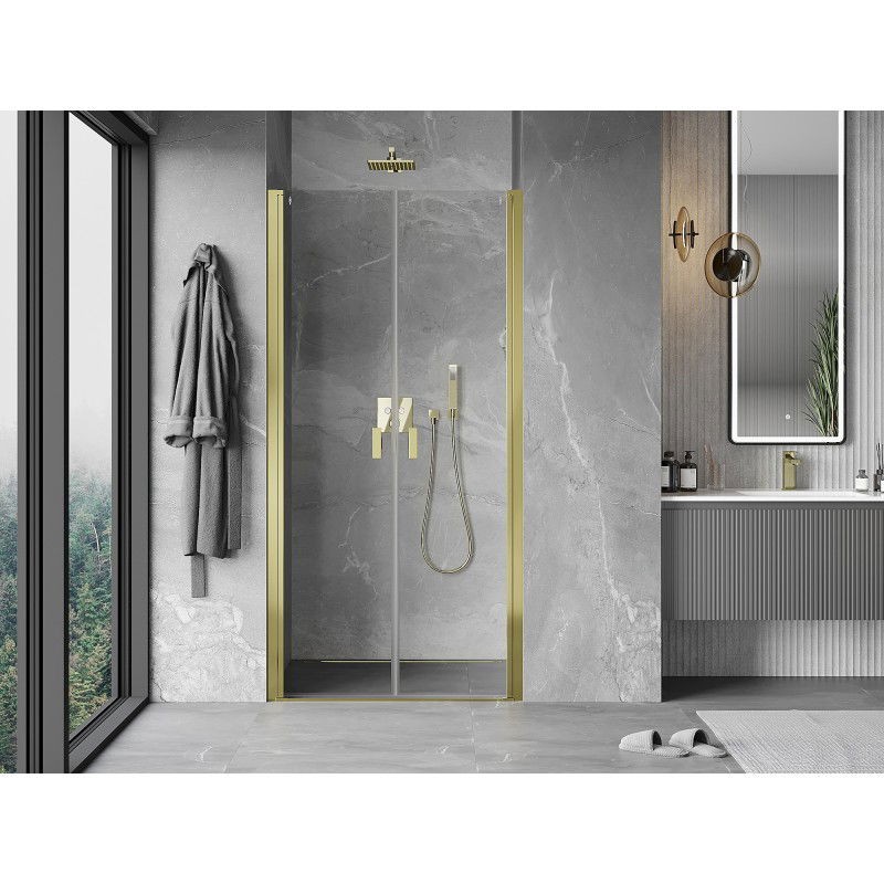 Specifikace produktu: Rozměr: 100x200 cm Strana montáže: Univerzální Vchod: Výklopný Barva skla: Průhledná Povrchová úprava: Zlatá Profil: Hliník Typ skla: Tvrzené Tloušťka skla: 6 mm Povrchová úprava pro snadné čištění Nastavitelná šířka Možnost instalace na sprchovou vaničku nebo dlaždice Mechanismus zvedání a spouštění dveří Magnetický proužek a elastomerové těsnění pro odtok vody Hliníkový práh těsnění dveří