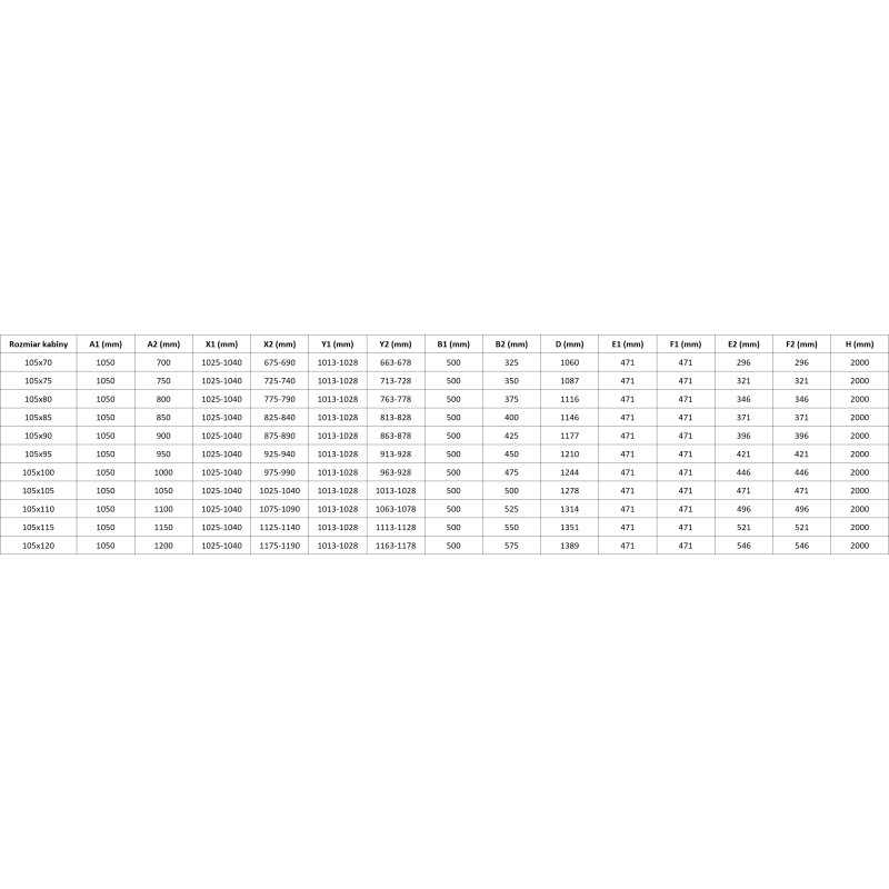 Specifikace produktu: Rozměr: 105x105 cm (levé dveře 105 cm, pravé dveře 105 cm) Výška: 200 cm Strana montáže: Univerzální Vchod: Skládací dveře Barva skla: Průhledná Povrchová úprava: Chrom Profil: Hliník Typ skla: Tvrzené Tloušťka skla: 6 mm Povrchová úprava pro snadné čištění Nastavitelná šířka Možnost montáže na sprchovou vaničku nebo obklad Mechanismus pro zvedání a spouštění dveří Mosazné panty v jedné rovině se sklem Magnetický proužek a elastomerové těsnění pro odtok vody Hliníkový práh těsnění dveří