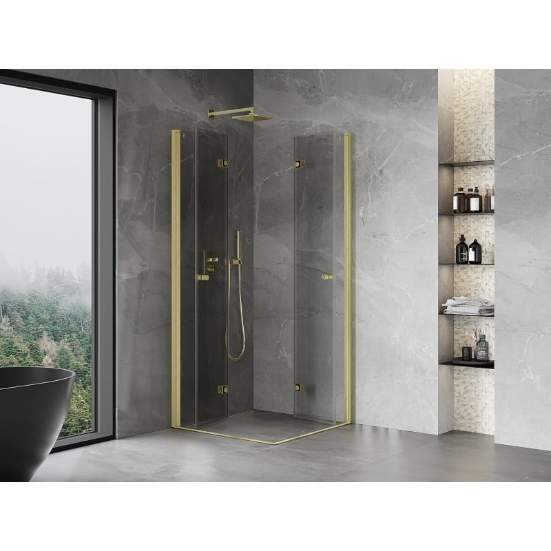 Specifikace produktu: Rozměr: 80x80 cm (levé dveře 80 cm, pravé dveře 80 cm) Výška: 200 cm Strana montáže: Univerzální Vchod: Skládací dveře Barva skla: Průhledná Povrchová úprava: Kartáčované zlato Profil: Hliník Typ skla: Tvrzené Tloušťka skla: 6 mm Povrchová úprava pro snadné čištění Nastavitelná šířka Možnost instalace na sprchovou vaničku nebo obklad Mechanismus pro zvedání a spouštění dveří Mosazné panty v jedné rovině se sklem Magnetický proužek a elastomerové těsnění pro odtok vody Hliníkový práh těsnění dveří