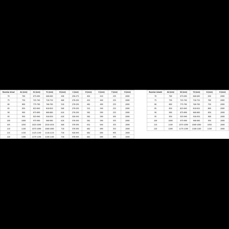 Rozměr: 70x110 cm (pravé dveře 70 cm, stěna 110 cm)