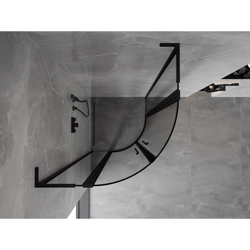 Specifikace produktu: Rozměr: 100x100 cm Výška: 200 cm Poloměr zakřivení R55 Strana montáže: Univerzální Vchod: Dveře s otočnými křídly Barva skla: Černý rám Povrchová úprava: Černá Profil: Hliník Úhlový stabilizátor L: Nerezová ocel Typ skla: Tvrzené Tloušťka skla: 6 mm Povrchová úprava pro snadné čištění Nastavitelná šířka Možnost instalace na sprchovou vaničku nebo dlaždice Mechanismus pro zvedání a spouštění dveří Magnetický proužek a elastomerové těsnění pro odtok vody Hliníkový práh těsnění dveří
