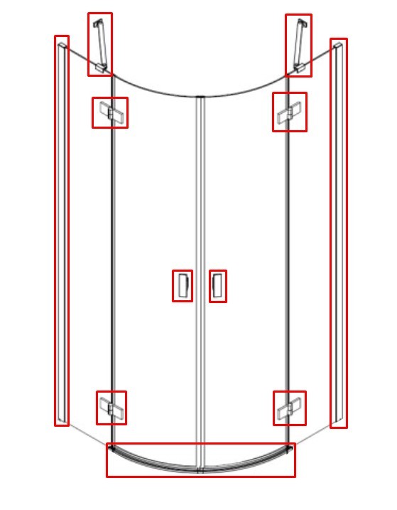 Montážní sada k čtvrtkruhovému sprchovému koutu MIST s křídlovým otvírání.