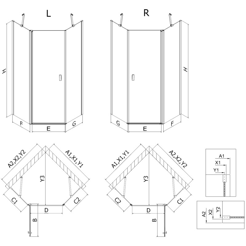 Specifikace produktu: Rozměr: 80x80 cm (dveře 80 cm, stěna 80 cm) Výška: 200 cm Strana montáže: Univerzální Vchod: Dveře s výklopnými křídly Barva skla: Průhledná Povrchová úprava: Zlatá Profil: Hliník Konzola: Nerezová ocel Typ skla: Tvrzené Tloušťka skla: 6 mm Povrchová úprava pro snadné čištění Nastavitelná šířka Možnost instalace na sprchovou vaničku nebo dlaždice Mechanismus zvedání a spouštění dveří Magnetický proužek a elastomerové těsnění pro odtok vody Hliníkový práh těsnění dveří