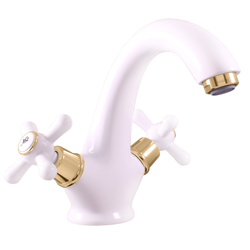 RAV Slezák - MORAVA RETRO - Umyvadlová baterie bez výpusti, Bílá/Zlatá - lesklá, Bílá/Zlatá - lesklá, 1/2" (MK128.5BZ)