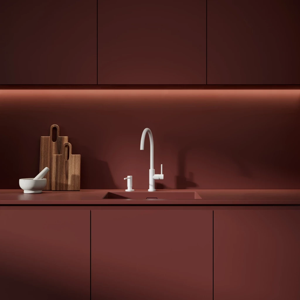 Tento dávkovač tekutého mýdla je praktickým a esteticky příjemným řešením, které se hodí jak do kuchyně, tak do koupelny. Pomáhá udržovat pořádek v pracovním prostoru a uvolňuje každodenní prostor, zatímco možnost montáže přímo na kuchyňskou linku, dřez nebo umyvadlo poskytuje naprostou flexibilitu designu. Dávkovač, barevně sladěný s armaturami OMNIRES, harmonicky ladí s ostatními armaturami a jeho ergonomický design zajišťuje pohodlný a rychlý přístup k mýdlu nebo mycímu prostředku na nádobí.