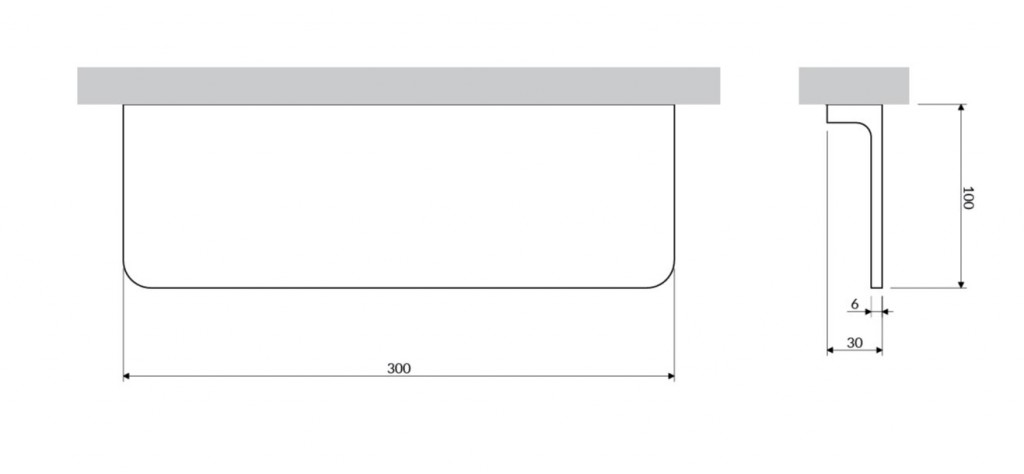 - šířka: 30 cm, výška: 3 cm, vzdálenost od zdi: 10 cm