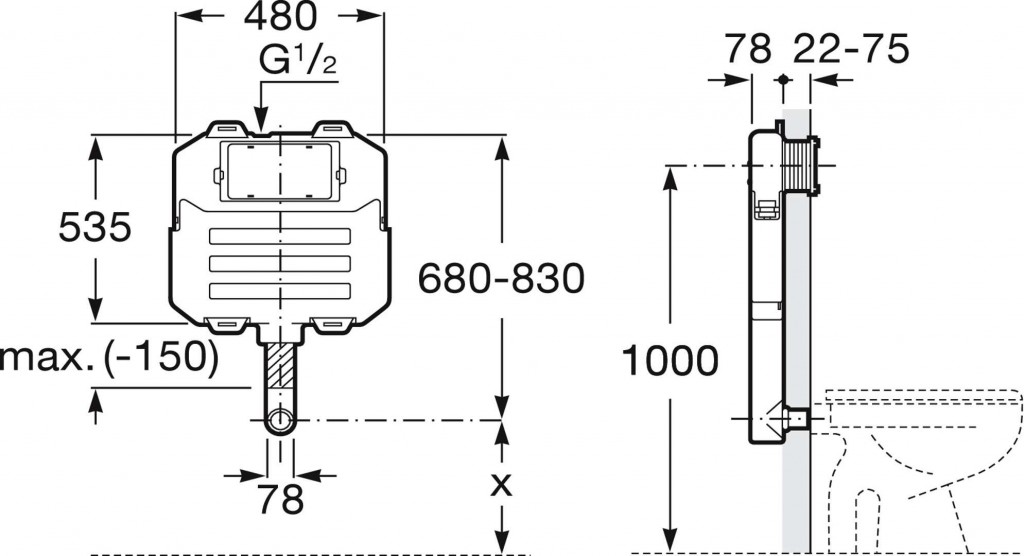- hloubka pouze 80 mm, zkrácená hloubka nemá vliv na velikost nádrže