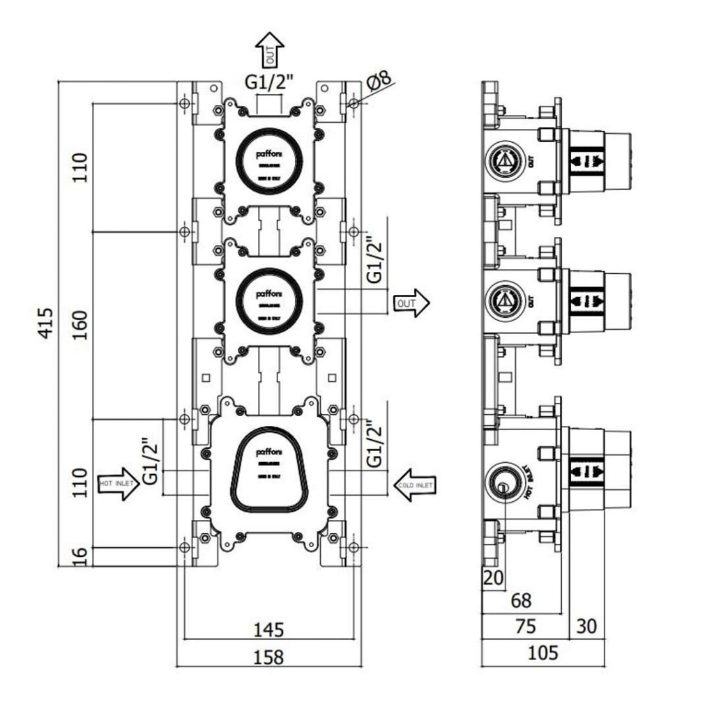 Podomítková sada Modular Box pro termostatickou sprchovou/vanovou baterii