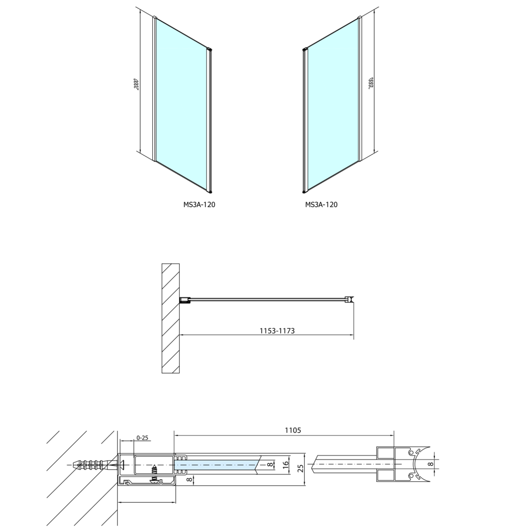 Koncept zástěn MODULAR SHOWR nabízí moduly skel s profily pro snadnou montáž. Skla jsou vespodu opatřena hliníkovým profilem, který dodává zástěnám elegantní vzhled, lépe těsní a usnadňuje manipulaci a instalaci. Dle rozměrů skel je vždy nutno dokoupit potřebnou vzpěru pro zajištění stability zástěny. Vzpěry jsou zhotoveny z nerez oceli a lze je libovolně zkracovat, řez je schován v zakončovacích dílech (vyjma rohových vzpěr, které nelze upravovat).